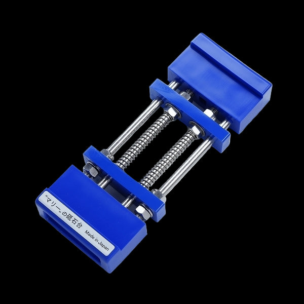 Držák je vhodný pro umělé i diamantové brusné kameny a vyžaduje minimální údržbu – na rozdíl od gumových stojanů se snadno čistí a časem nestárne.