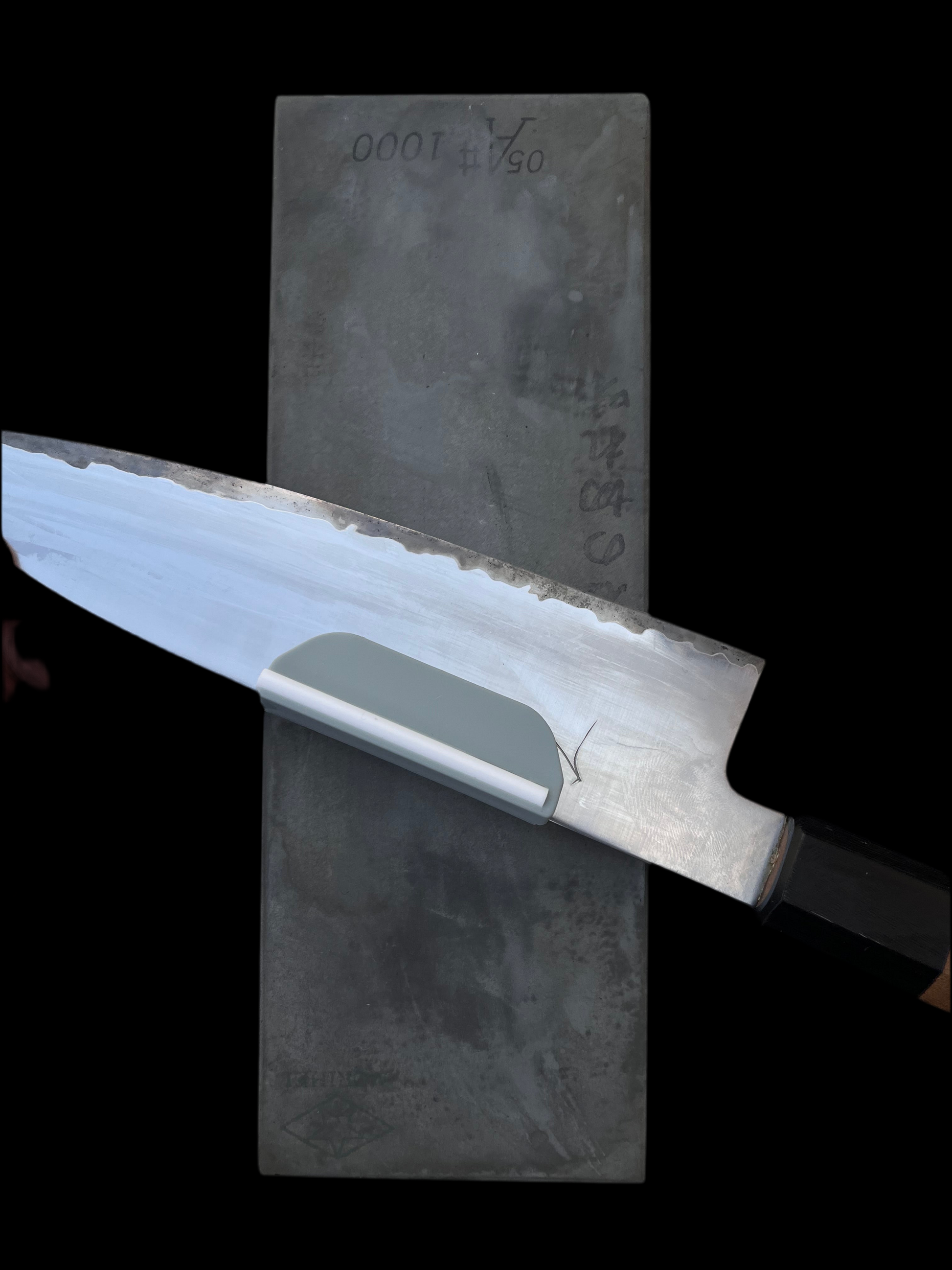 Vodicí klip na broušení nožů od japonské značky Naniwa. Tento nástroj pomáhá udržet správný úhel při ručním broušení nožů na brusném kameni, což je ideální pro začátečníky nebo pro ty, kteří chtějí dosáhnout konzistentních výsledků.