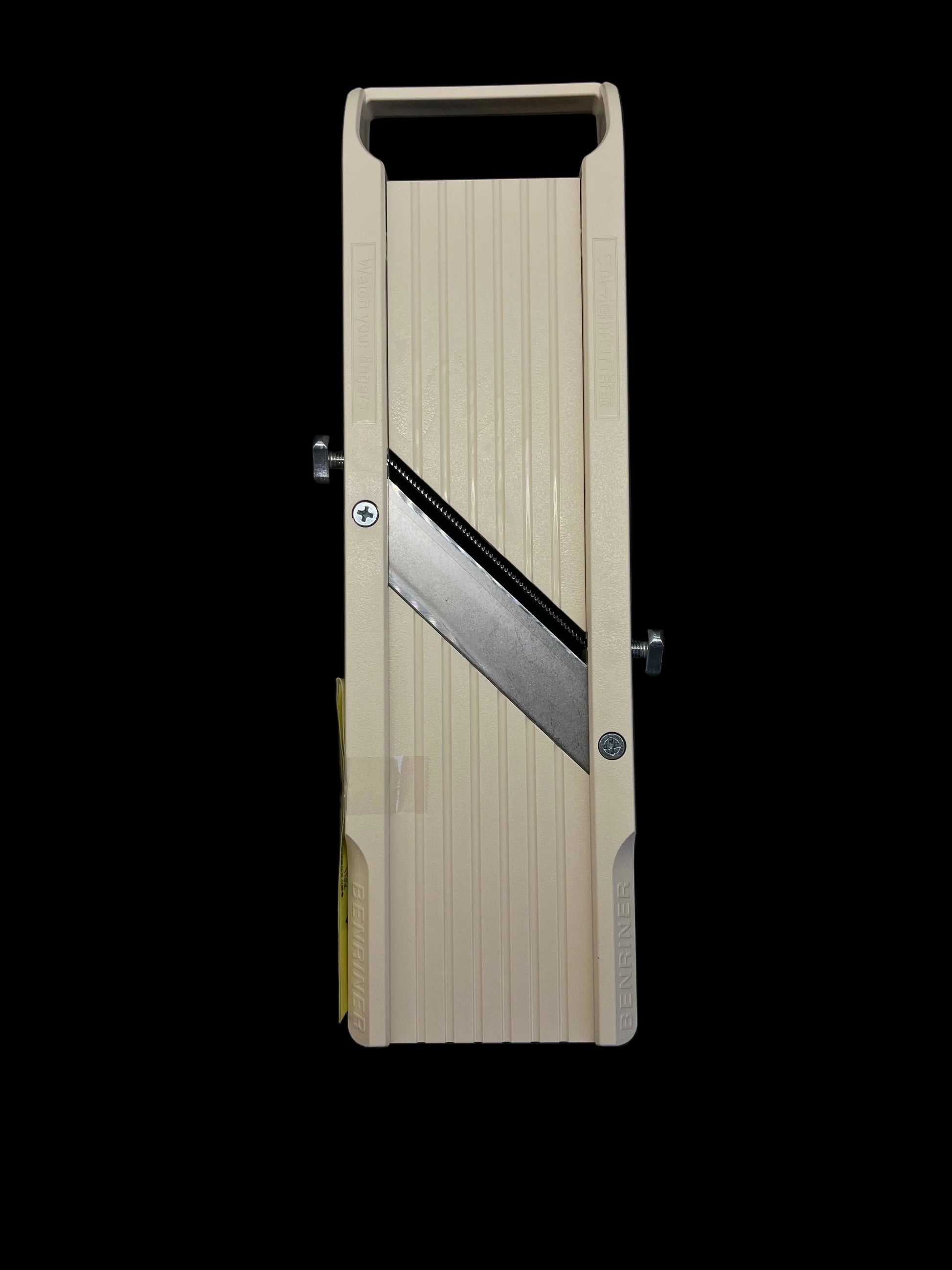 Jednoduchá a funkční konstrukce je navržena tak, aby byla mandolína lehce ovladatelná, stabilní a bezpečná při používání. Součástí je ochranný držák, který chrání prsty při krájení a umožňuje pohodlnou práci i s menšími kusy surovin. Díky kompaktním rozměrům se Benriner No. 64 snadno skladuje a je ideální volbou pro domácí kuchyně, ale i pro profesionální provozy, kde je kladen důraz na rychlost a konzistenci řezu.