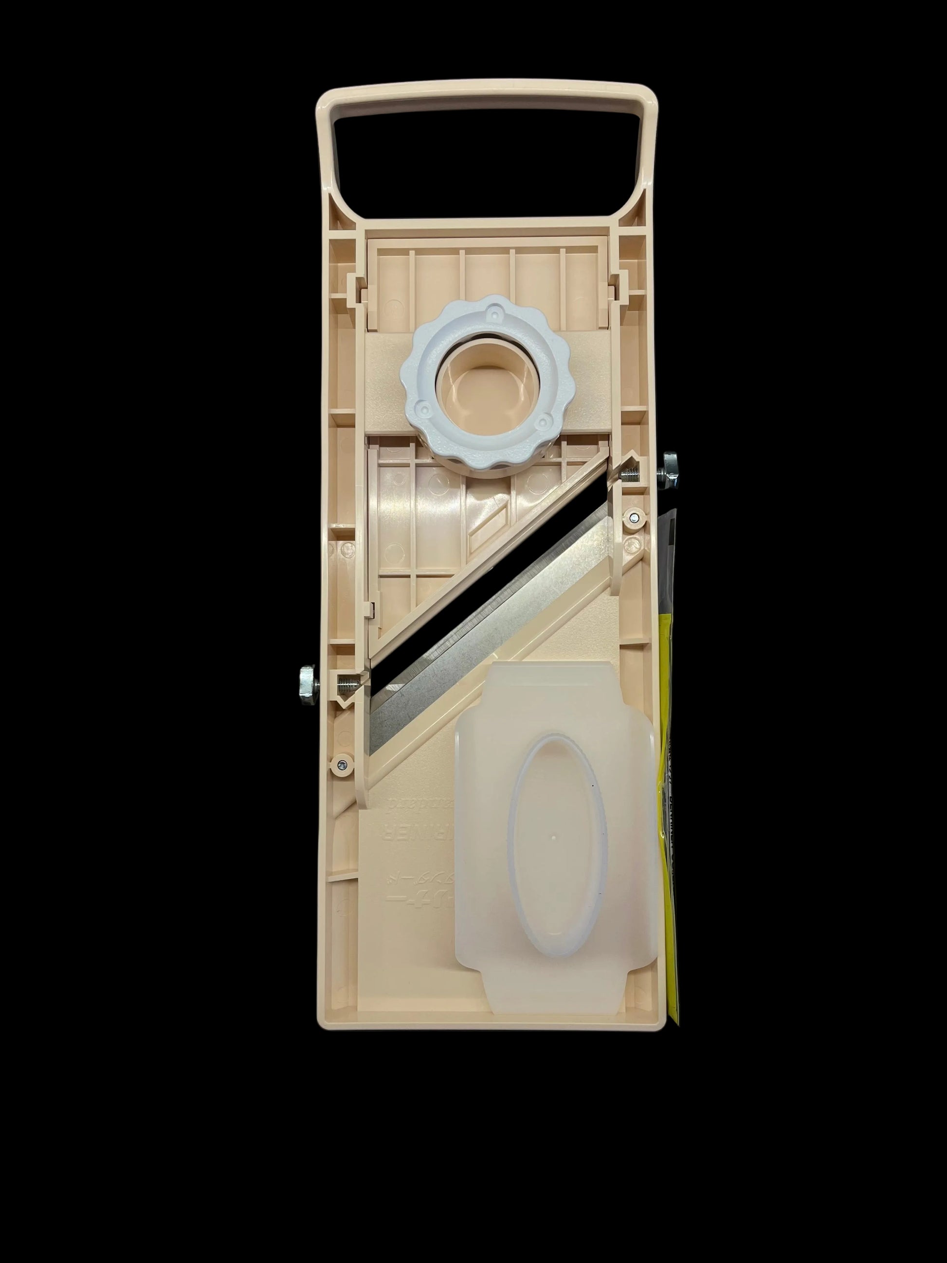 Tělo je z pevného ABS plastu odolného proti opotřebení, který je ergonomicky tvarovaný pro stabilní práci na kuchyňské lince. Součástí je ochranný držák prstů (finger guard), který přispívá k bezpečnému použití při krájení. Mandolína je navržena tak, aby byla lehce čistitelná a skladná, takže se hodí jak pro každodenní domácí vaření, tak pro přípravu větších porcí zeleniny při společenských událostech.