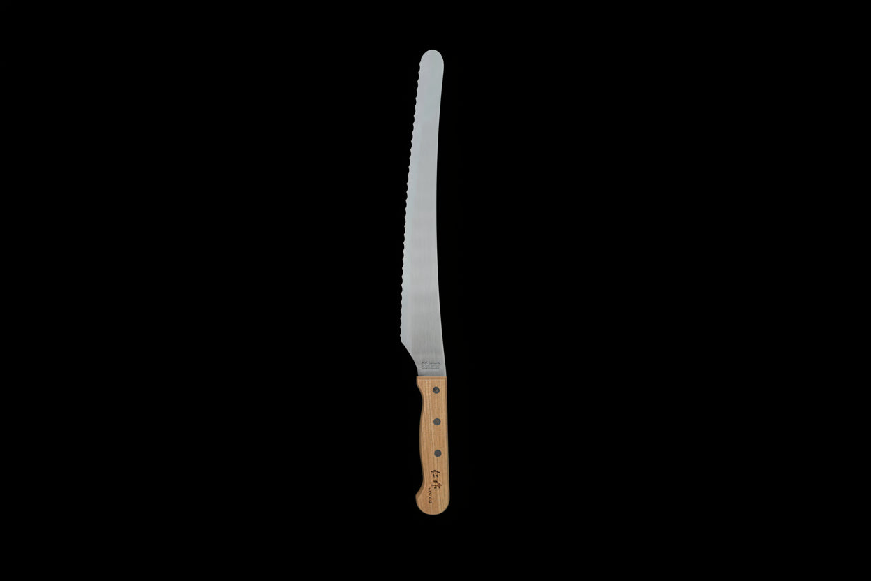 Tento zoubkovaný nůž Jin-saku No. 3010 (Medium) od společnosti Tomita Cutlery je tradiční japonský nůž navržený pro plynulé a efektivní krájení bez nutnosti speciální techniky řezu.