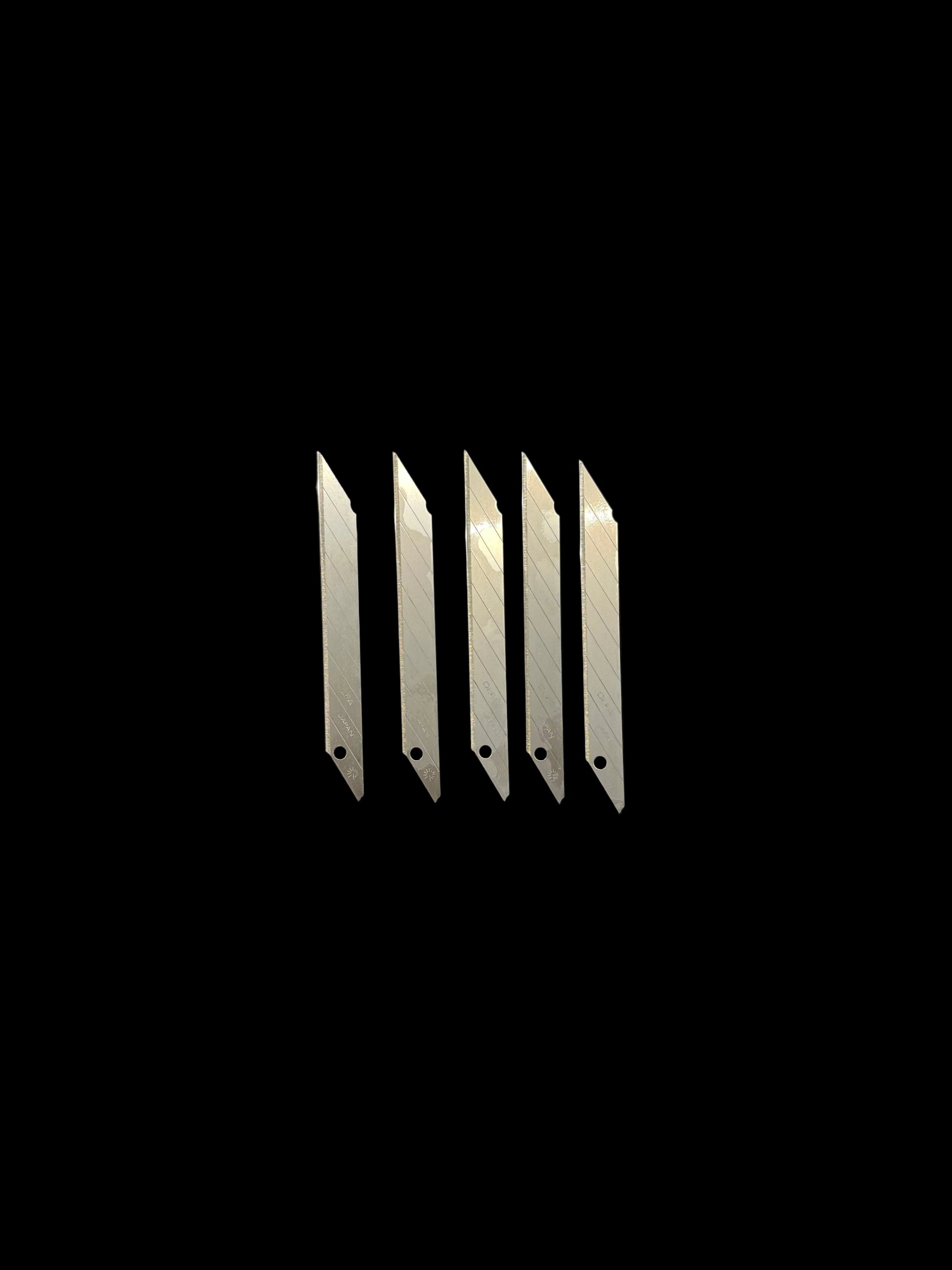 Sada obsahuje pět segmentových lamelových nožů 9 mm s úhlem řezu cca 30 °. Segmenty lze bezpečně odlamovat, aby se získalo nové ostří během používání. Čepele jsou navrženy pro běžné hobby i profesionální cuttery s kompatibilní šířkou listu.